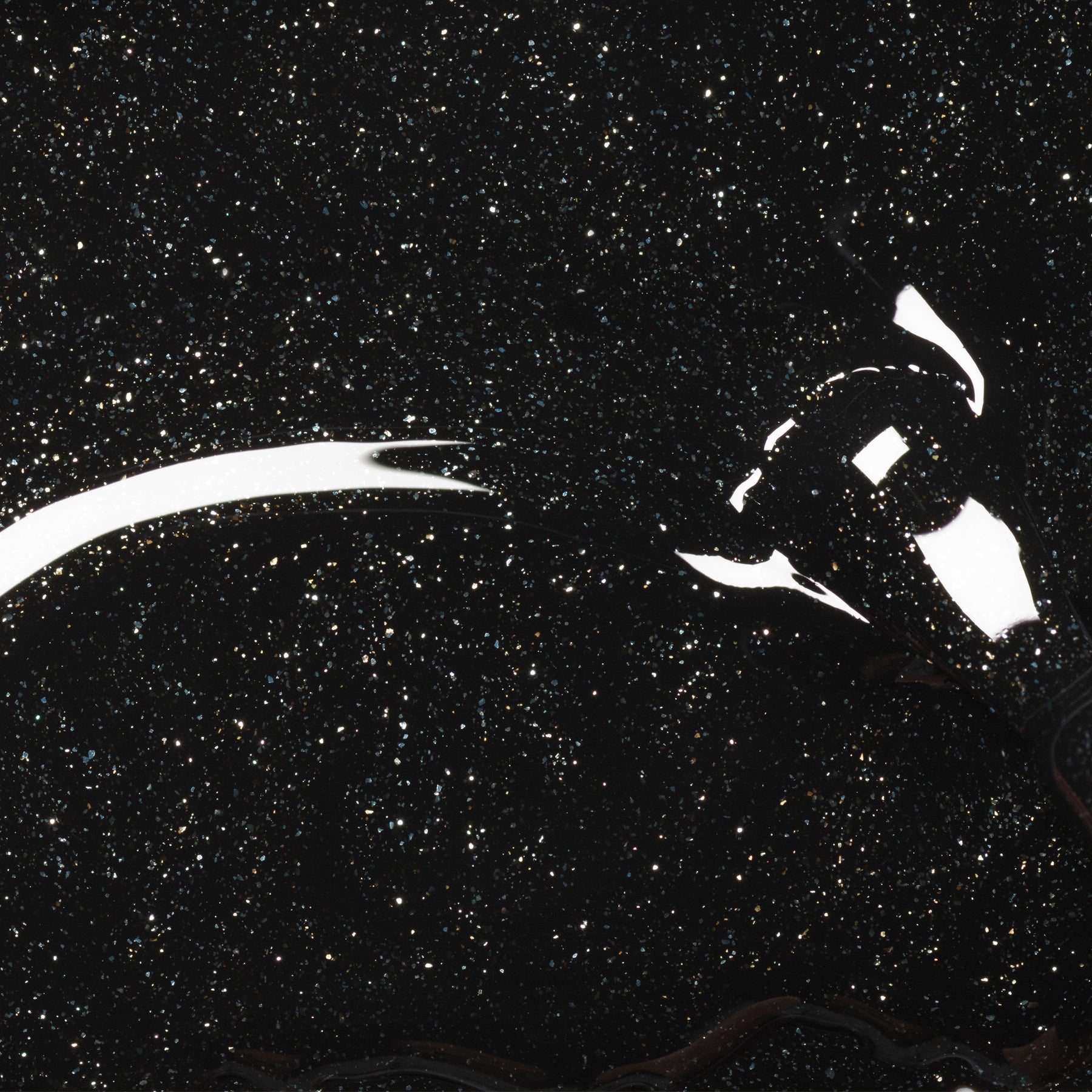 A sumptiously soft black glitter, shimmering with a hint of dark green.