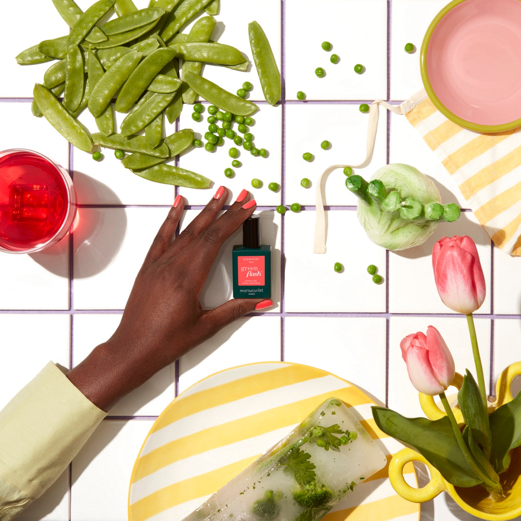 Green Flash is the 1st clean semi-permanent varnish on the market that achieves a 'professional' manicure at home. The polish has long durability, much like a 'gel' but doesn't look thick, plastic or artificial on the nails and instead has the same appearance and thinness as regular lacquer. Lasting for up to 10 days, it also doesn't damage the nails and is easily removed like a varnish.