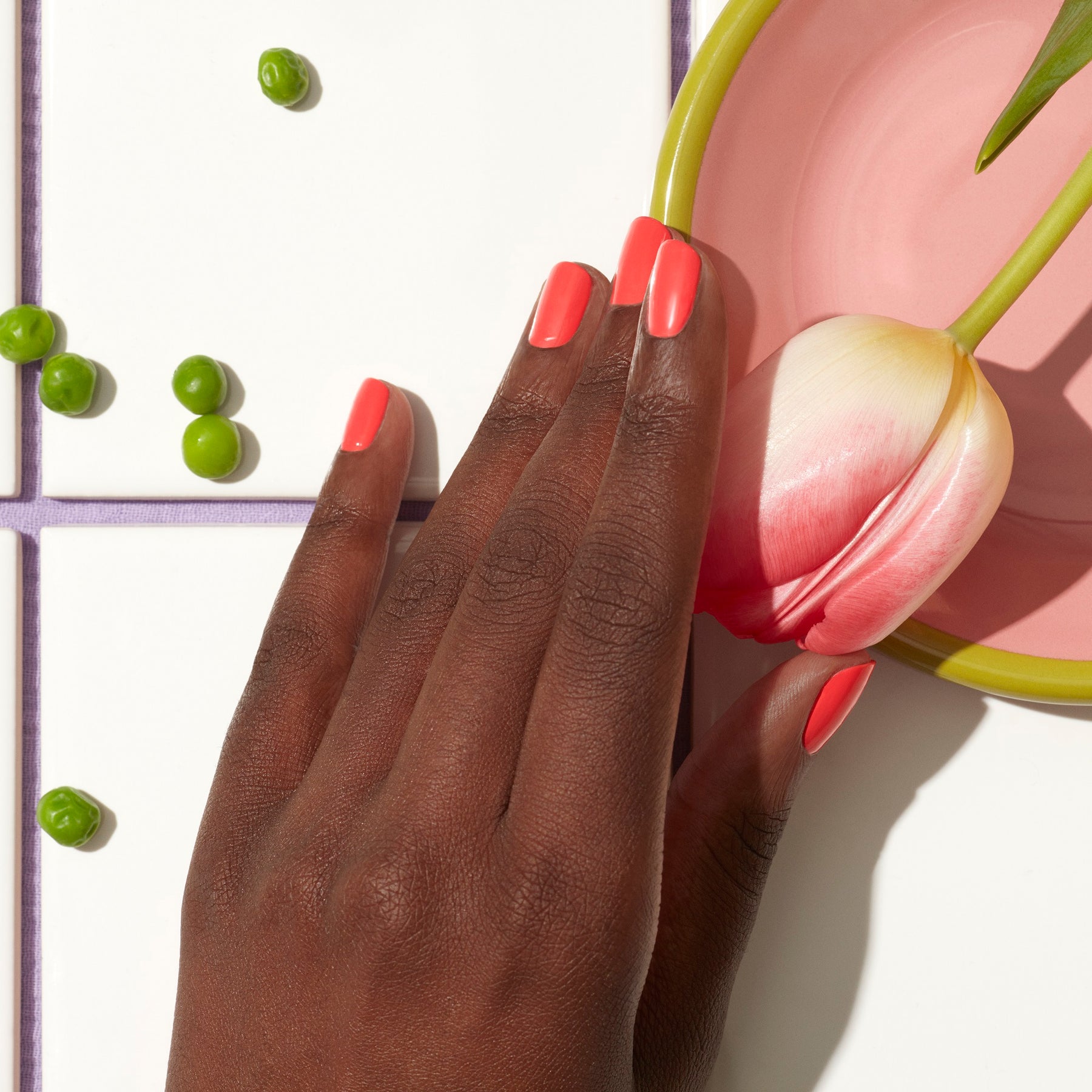 With a supreme shine that lasts up to 10 days, Green Flash, is a semi-permanent clean nail colour that doesn't damage the nails and is easily removed like a varnish. Lasting up to 10 days, it has long durability, much like a 'gel' but doesn't look thick, plastic or artificial on the nails and instead has the same appearance and thinness as regular lacquer. Formulated with up to 84% of bio-sourced ingredients that include Sugar Cane, Manioc, Corn, Wheat and Cotton, it is 9 FREE which basically means it's made without the bad stuff. So it's better for you and better for the environment.