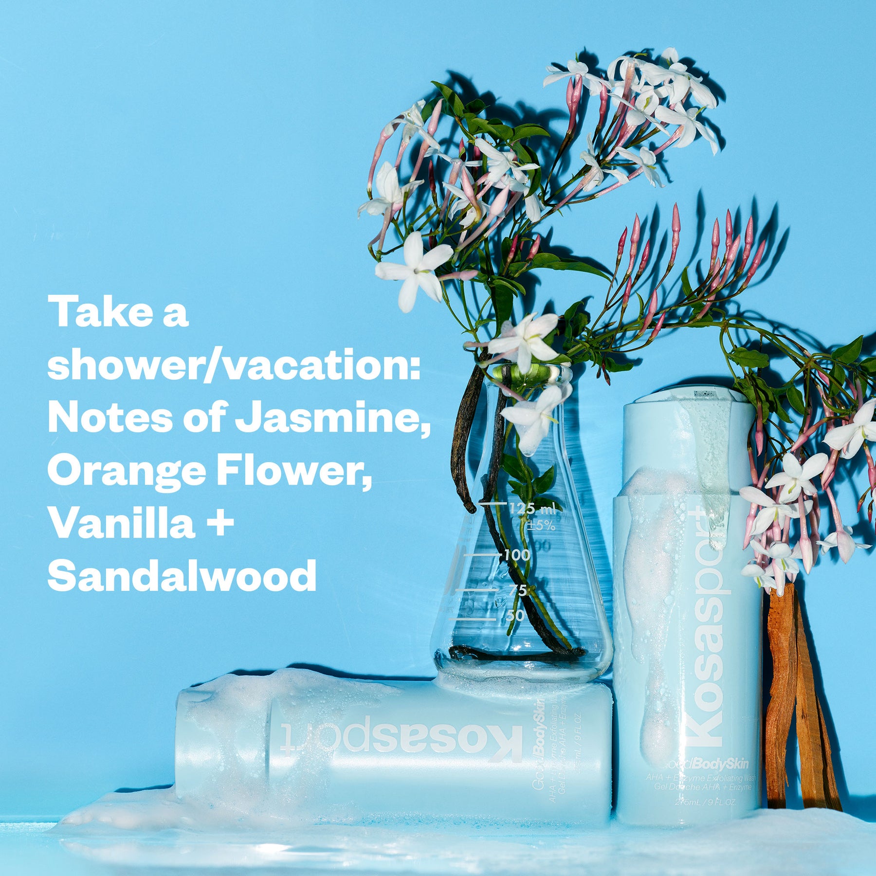 With notes of Jasmine, Orange Flower, Vanilla and Sandalwood this shower wash transports you to your vacation.