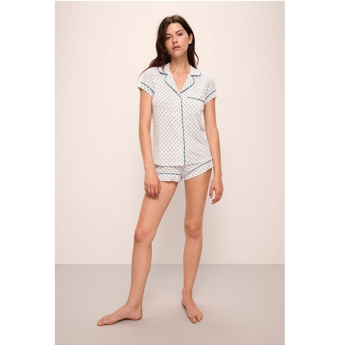 Gisele TENCEL Modal Shortie PJ Set - Petite Batik Ivory/Denim Blue
