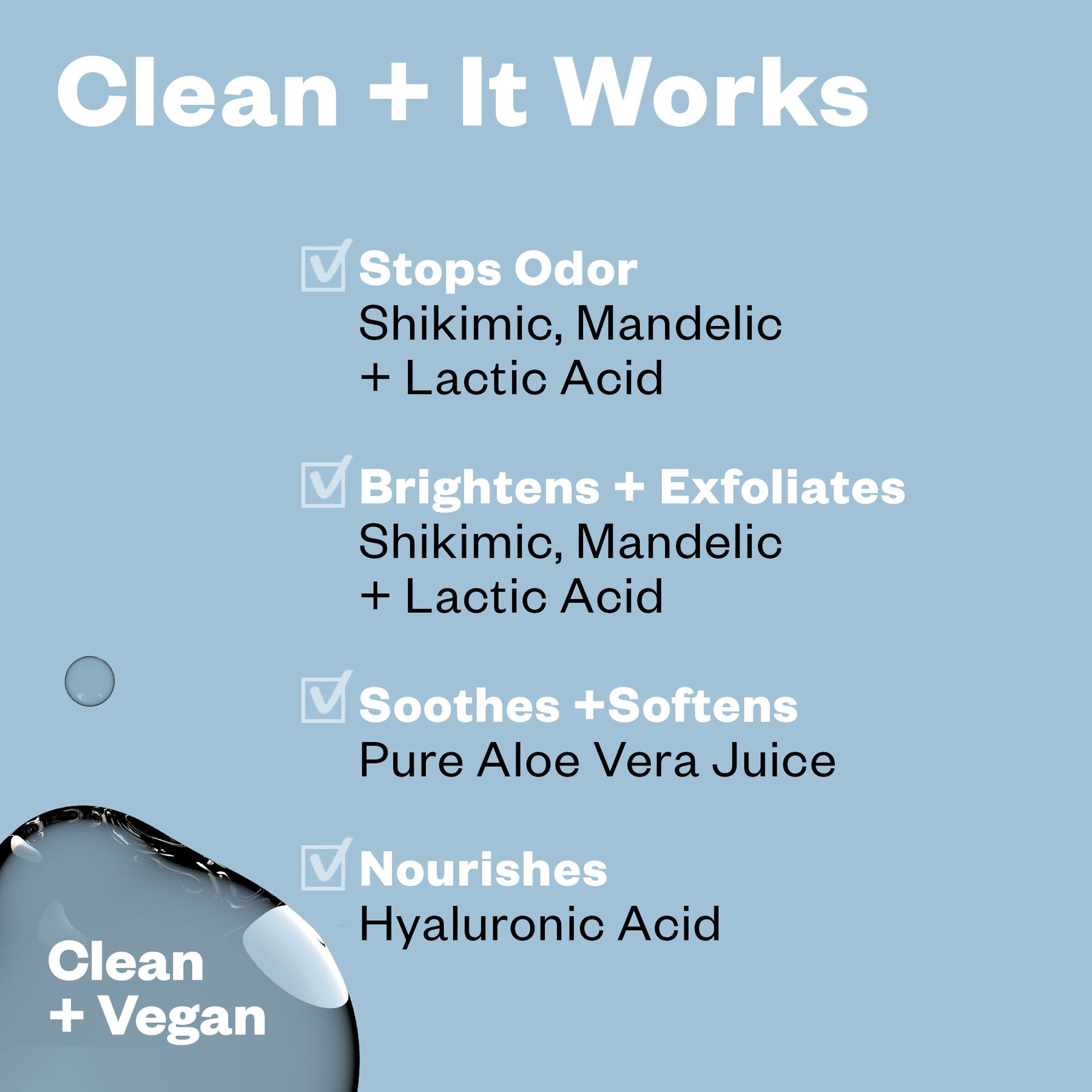 Additional skincare ingredients will also soothe skin, visibly brighten, and help with ingrown hairs. Contains no aluminum, no baking soda. Dries quickly.