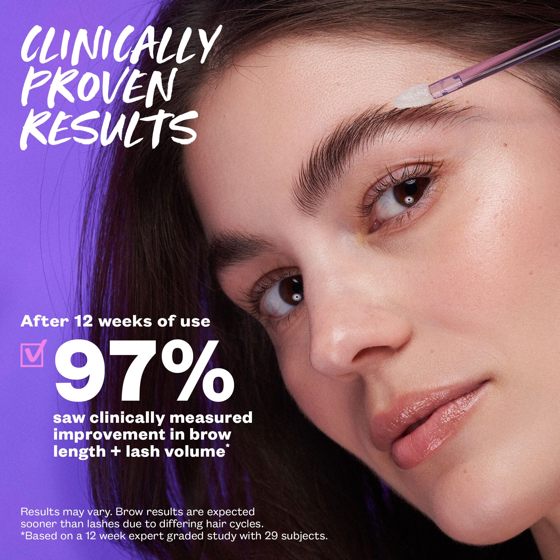 After 12 weeks of use, 97% saw clinically measured improvement in brow length + lash volume.*