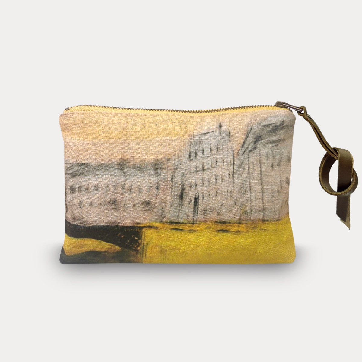 This pouch is made with a unique Maison Levy 100% French linen print that is printed on both sides and lined with a recycled polyester waterproof fabric
