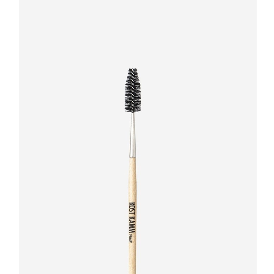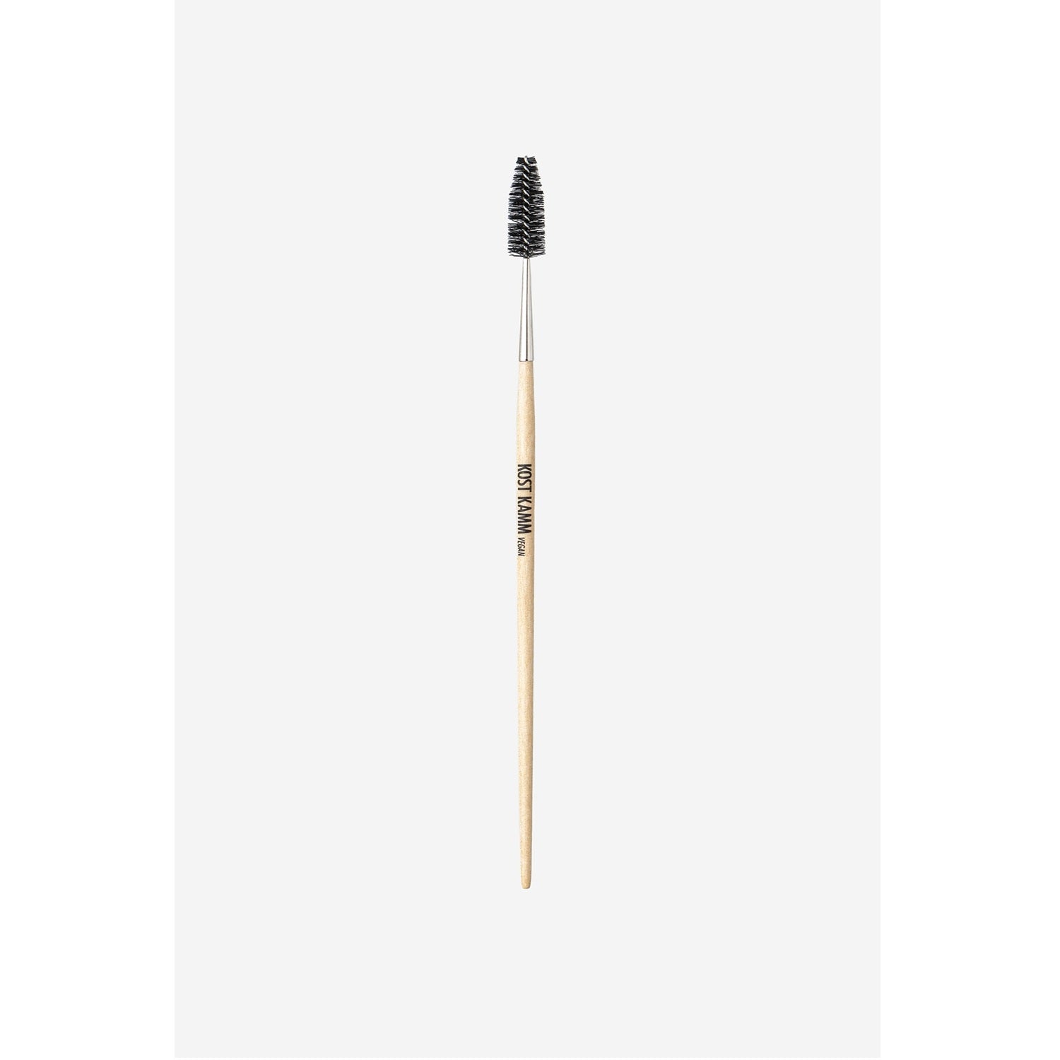 A vegan mascara wand shaped brush that is great for brushing and taming eyebrows