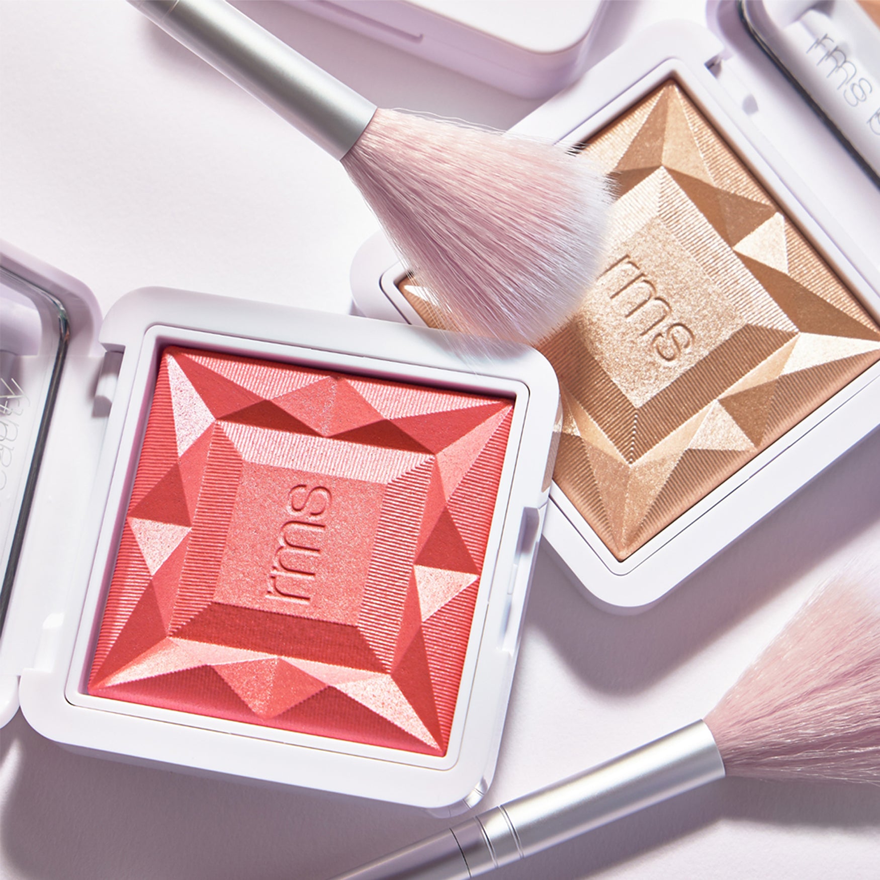 A new take on the RMS Beauty original Fan Brush. This is a powder highlighter and sheer colour fan brush, redesigned with 'imitation' goat hair.