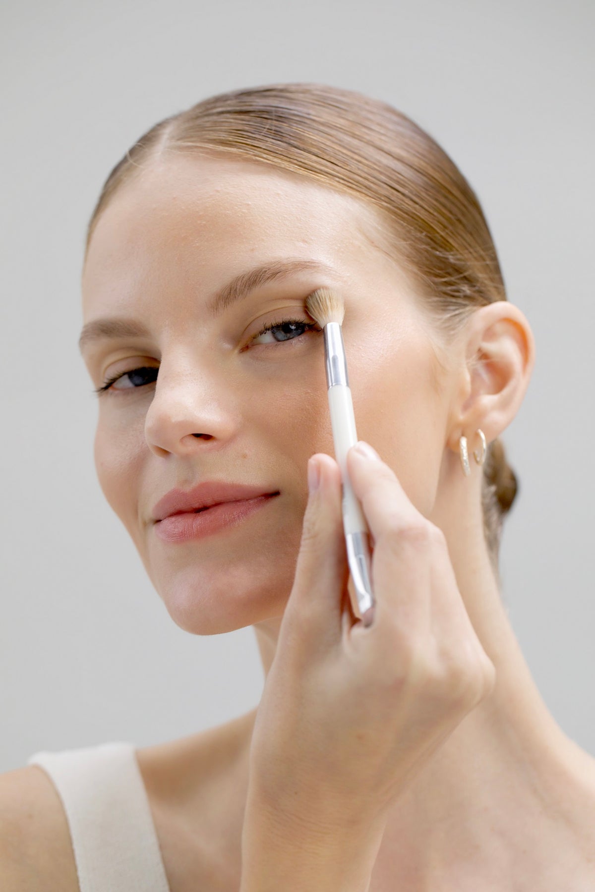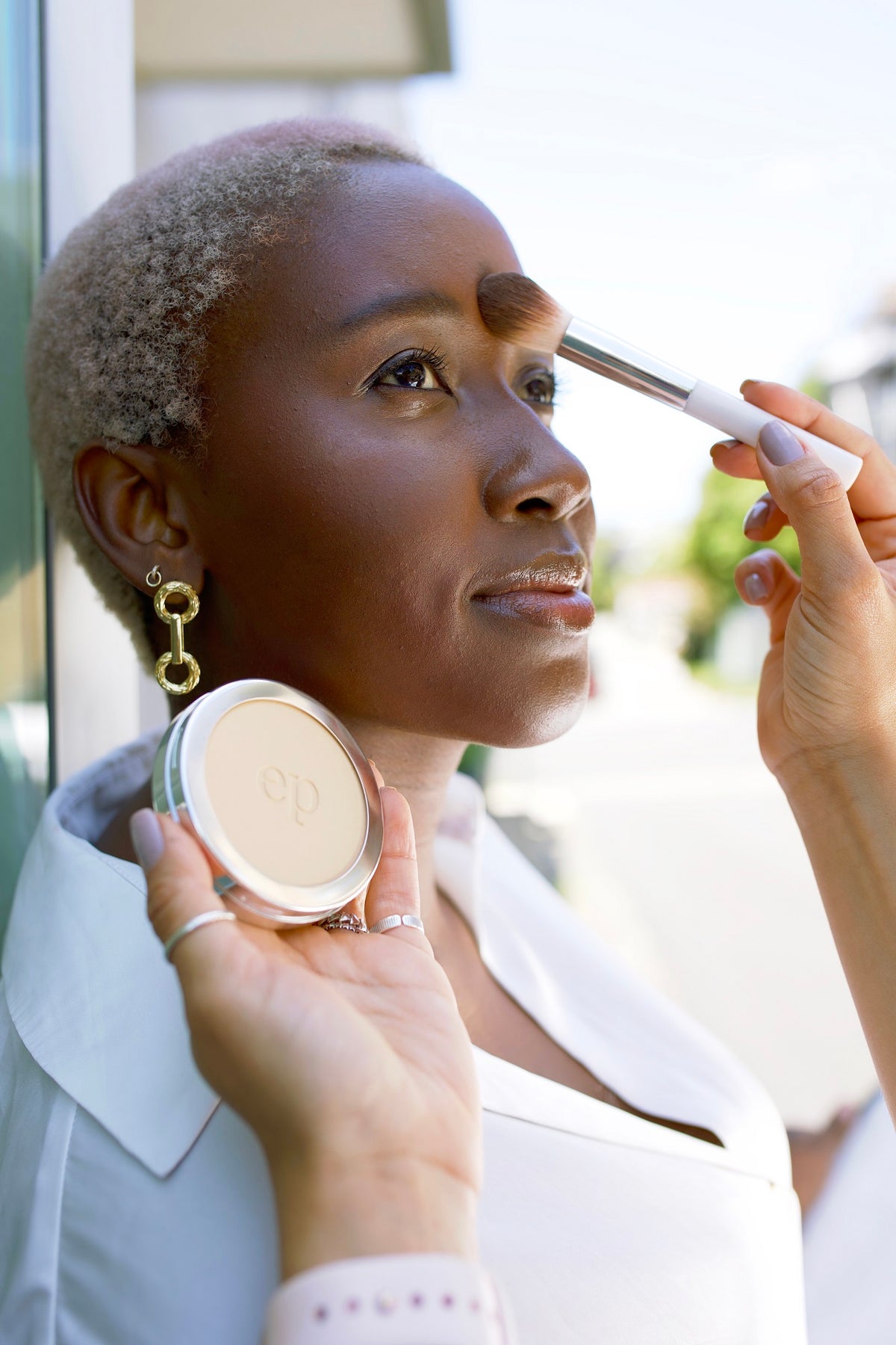 Over clean skin or your favourite foundation or concealer, lightly dust the Corn Setting Powder, including using as a prep on eyelids for eyeshadow and eyepencils.