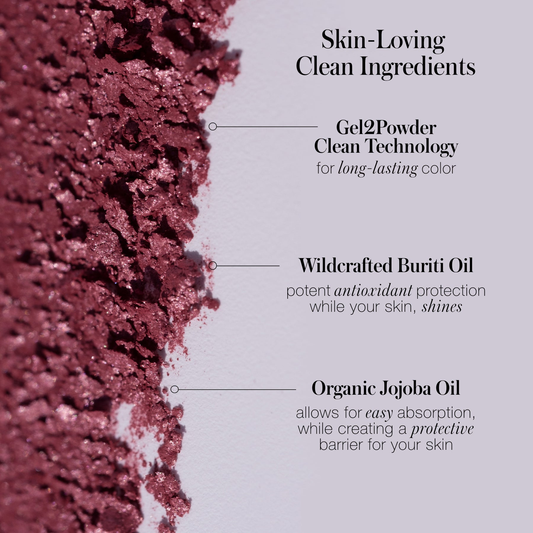 It uses Sugar-derived wet powder technology that combines a creamy texture with a long-lasting 3D finish.  Which means it glides on effortlessly, infusing the skin with multi-dimensional life as the bouncy, light-as-air gel blends and builds colour.  Made with living ingredients like wildcrafted Buriti and organic Jojoba oils which nourish and smooth.