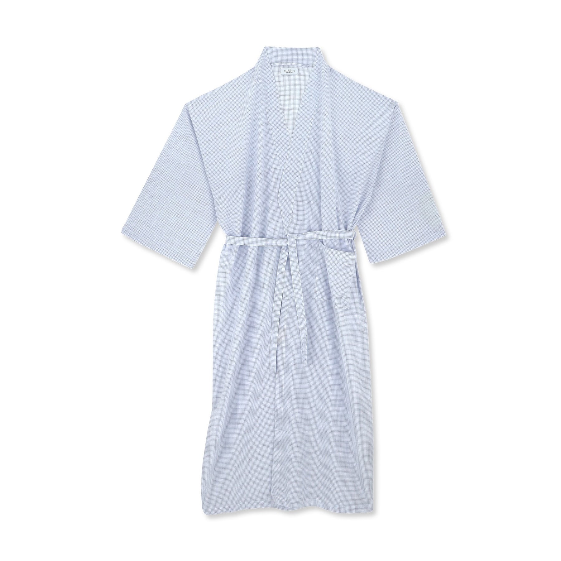 100% blue check cotton, spun and woven by hand on wooden looms in South India.