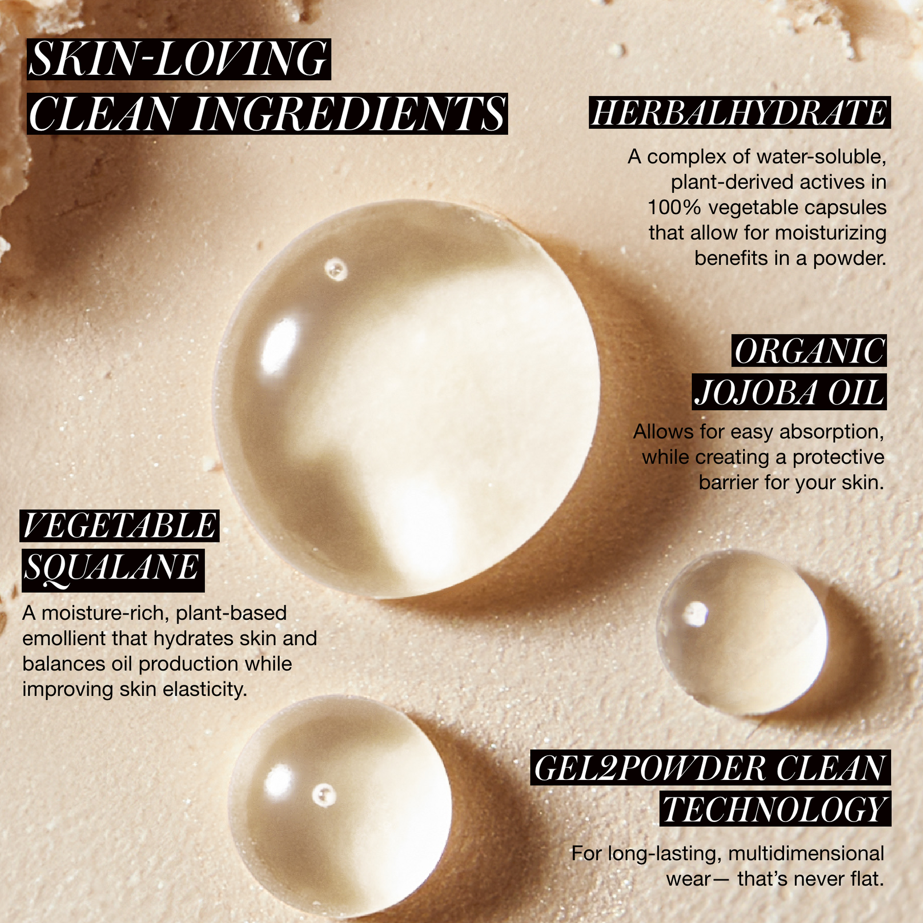 This powder goes on like a second skin, setting, blurring, nourishing and lasts all day long