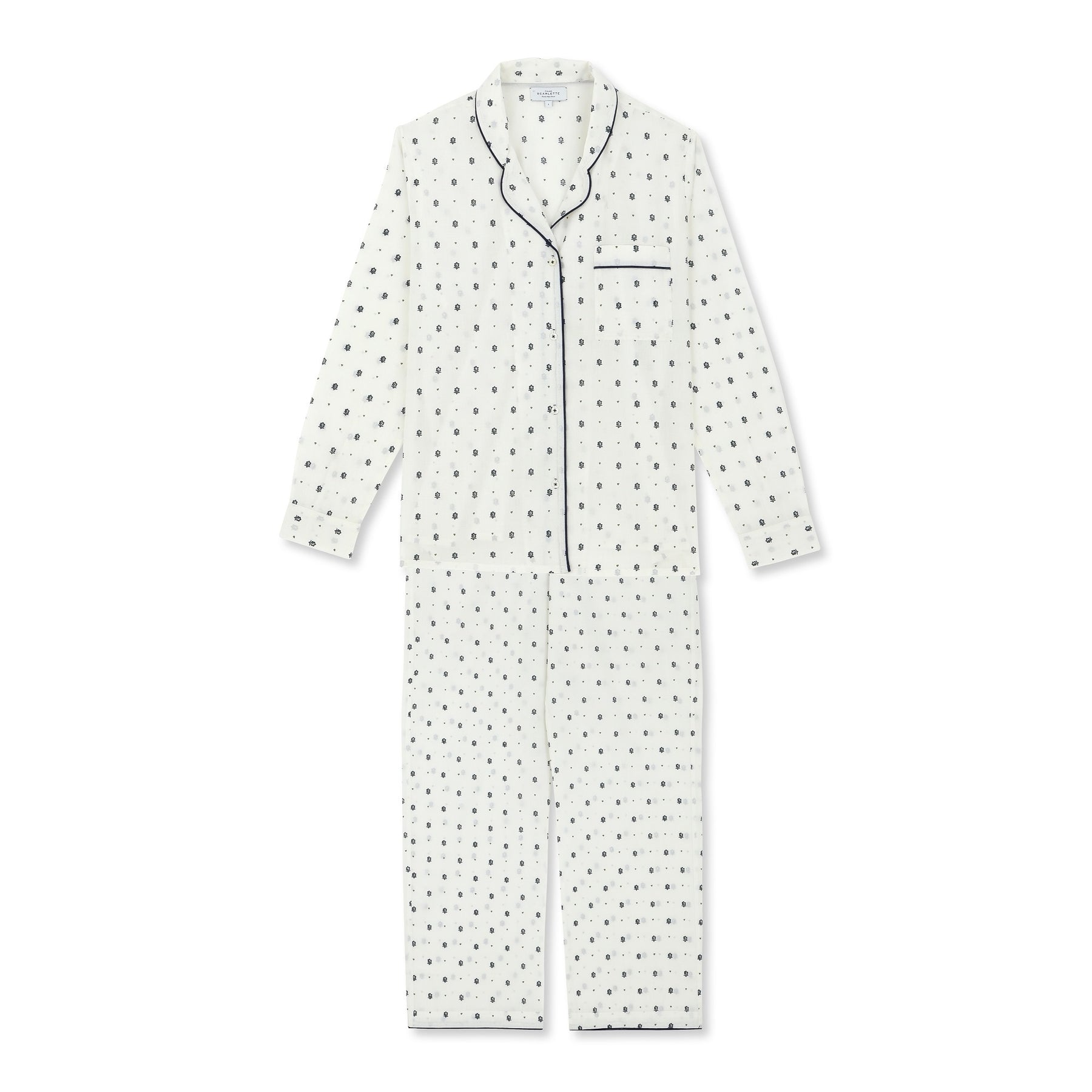 Long-sleeved pyjama jacket and soft pants with contrasting bias finish.
