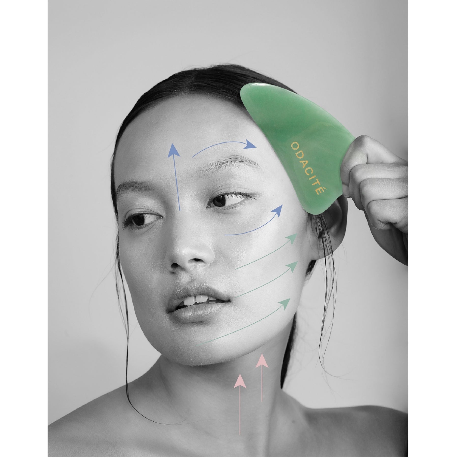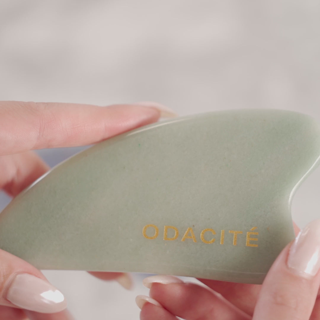Inspired by traditional Chinese medicine, the Odacite Crystal Contour Gua Sha is hand-carved with specific angles and thickness to perfectly adapt to the morphology of the face, providing effective and easy Gua Sha massage.